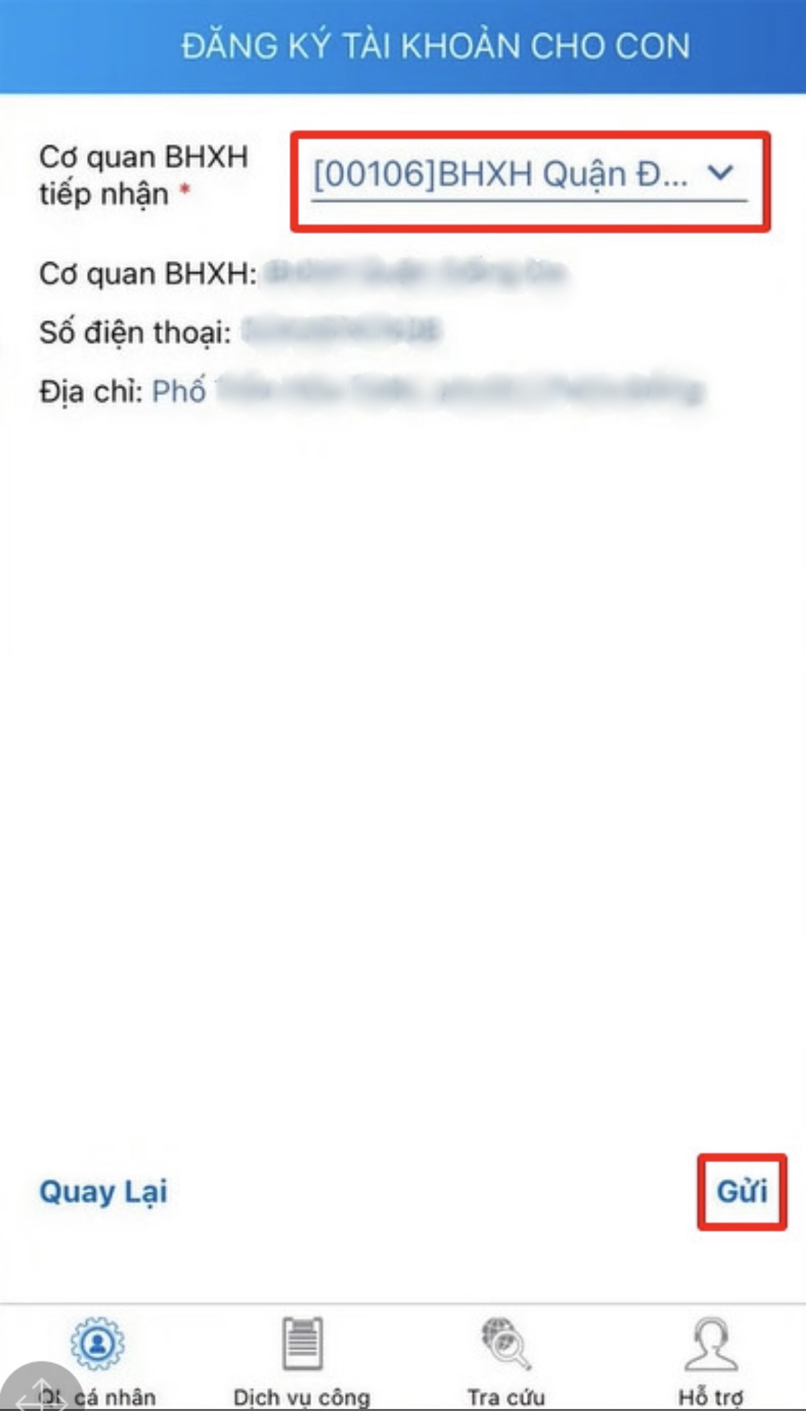 Bước 6: Lựa chọn cơ quan BHXH tiếp nhận: Cá nhân có thể lựa chọn cơ quan gần nhất để nộp tờ khai đăng ký giao dịch điện tử.